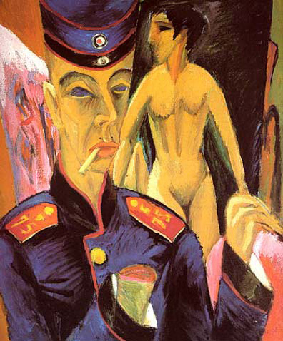 Ludwig Kirchner painted the work at left titled, Self-Portrait