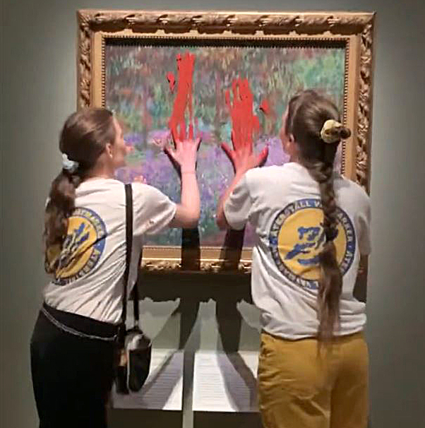 On June 14, 2023, two women from the eco-extremist group Återställ Våtmarker (Restore Wetlands), raided the National Museum in Stockholm, Sweden. They attacked Le Jardin de l’artiste à Giverny (The artist’s garden at Giverny), a painting created in 1900 by the French Impressionist Claude Monet.